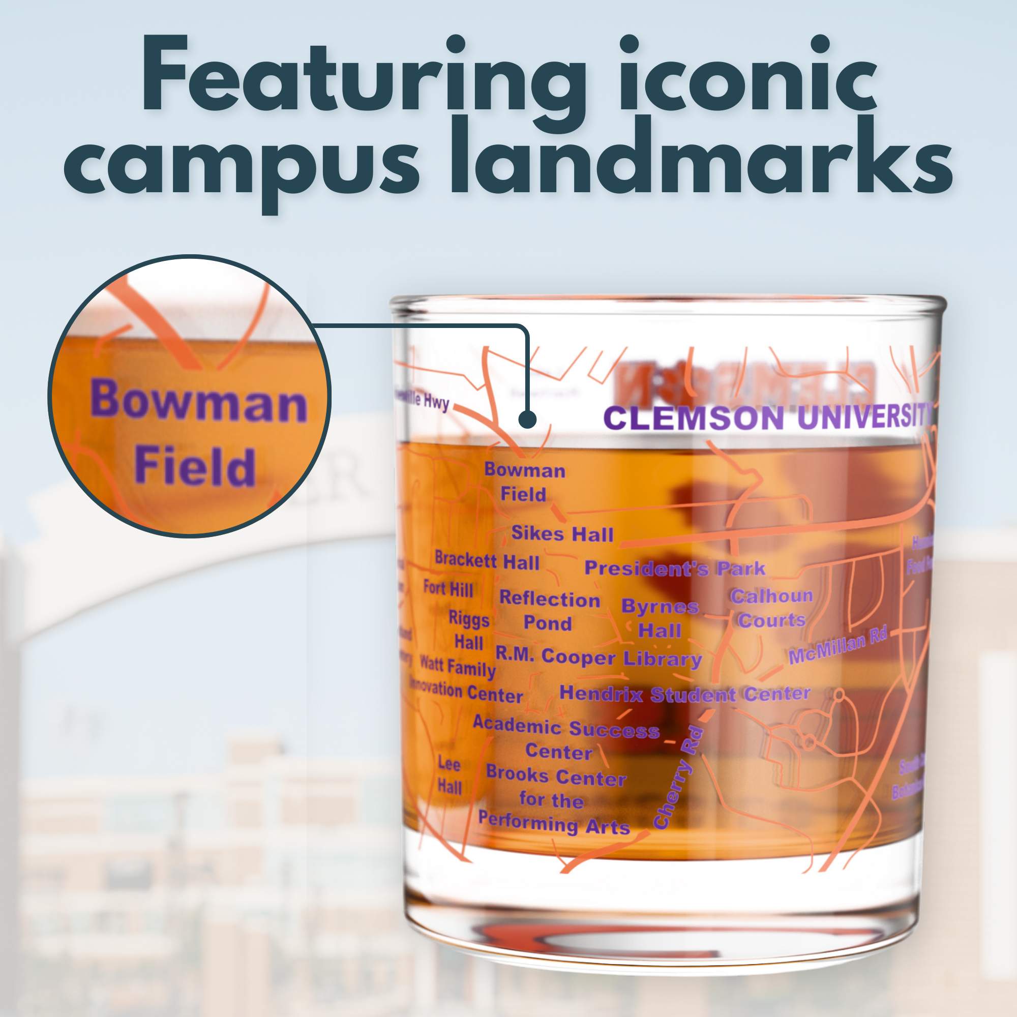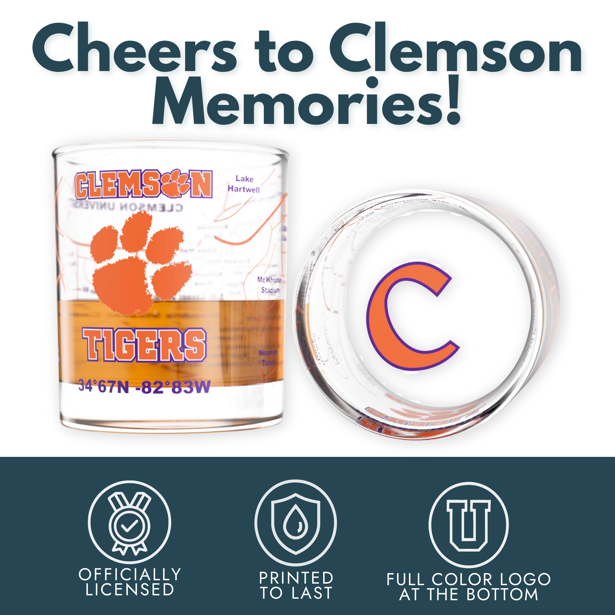 • Officially licensed Clemson drinkware: full‑color logo printed with an authentic campus map wrap.