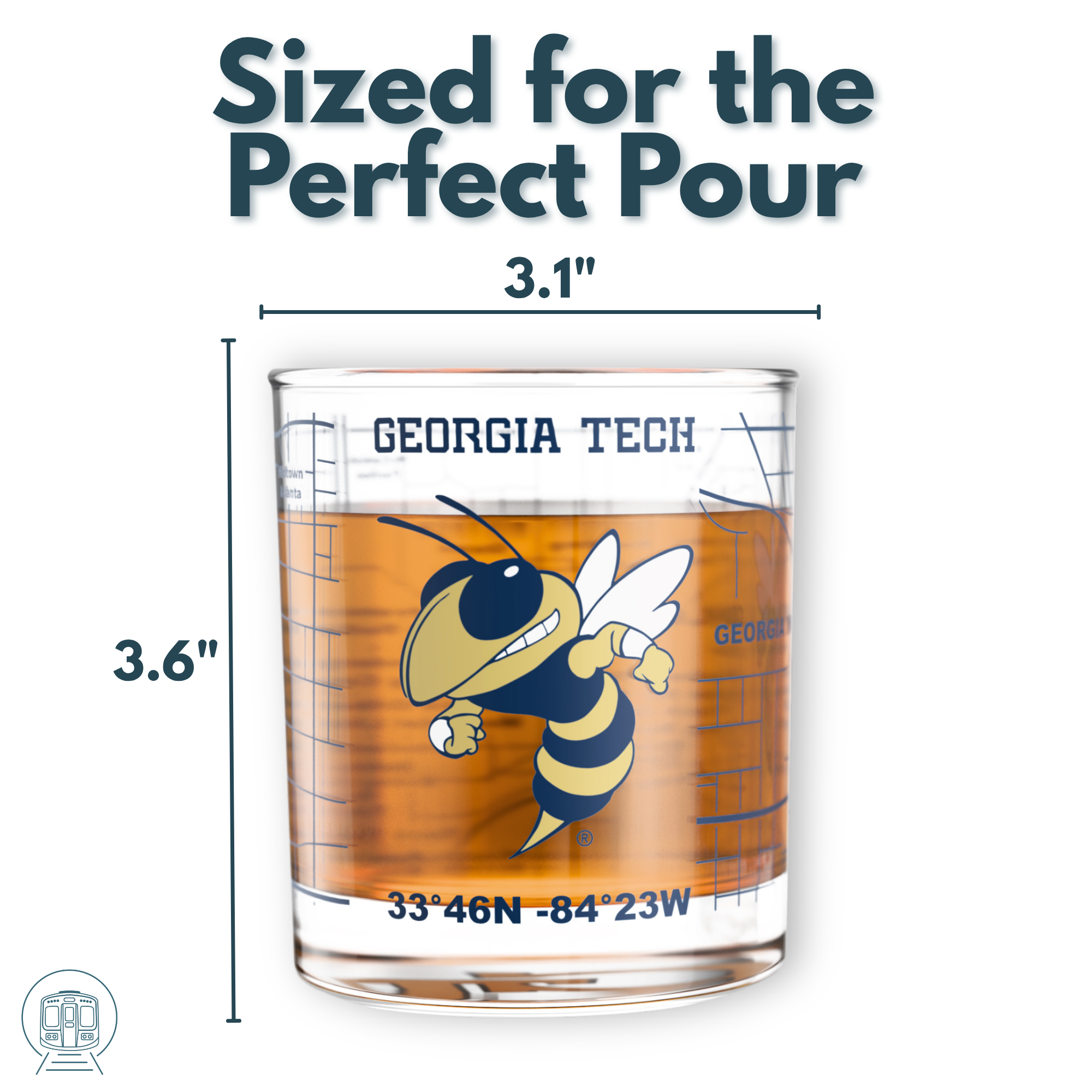 • Officially Licensed Georgia Tech Drinkware - Enjoy a classic cocktail with these school spirit whiskey sets. Each set contains 2 low ball rocks glasses featuring the university's full color logo and an authentic campus map with key landmarks included!
